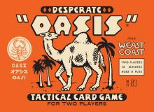 "Two players battle for control over the lush life-sustaining sanctuaries of the desert. By cleverly playing and grouping animal cards, players can show their strength, unlock powers, and use palm tree tokens to alter values. Do you have what it takes to survive in the Desperate Oasis? I don't."