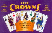 Five Crowns is rummy with a five-suited deck and a twist. The set collection aspect of rummy is basically the same, with groups of three cards in either runs or denominations making a valid meld. The twist is that in each hand the number of cards required to create a meld increases, from three cards in the first hand to thirteen in the last. The game, therefore, consists of eleven hands.