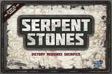 Players of Serpent Stones sit on opposite sides of a game board featuring seven staggered rows of Serpent Stones and take turns drawing a card and playing/discarding a card from an initial hand of five cards. Serpent Stones features three types of cards: